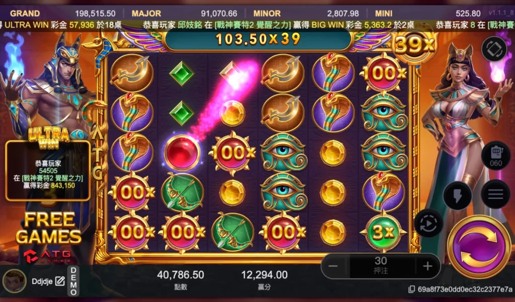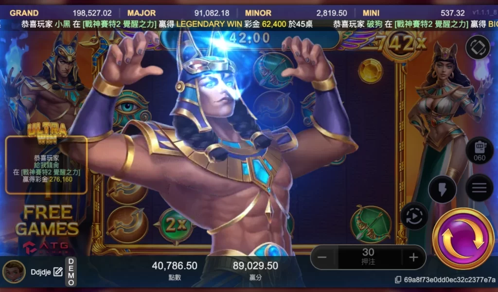 《戰神賽特2 覺醒之力》是 ATG 推出的熱門老虎機續作,在經典倍數玩法基礎上加入「覺醒之力」與倍數分裂機制,使整體爆分節奏與最大倍率進一步提升。遊戲除了延續原有特色,也強化了免費遊戲與倍數累積系統,讓玩家在轉動過程中有機會觸發更高倍率,成為近年討論度相當高的 ATG 電子遊戲之一。